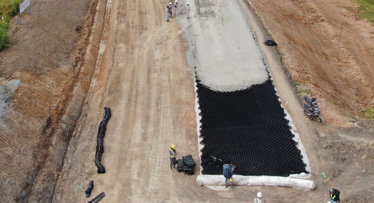 Geocell is a geosynthetic material used to prevent erosion, stabilize slopes and improves load distribution.